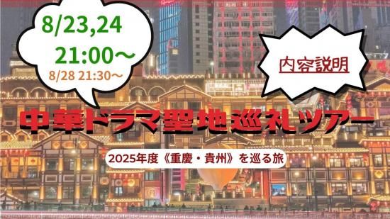 £²¡¥¥Ä¥¢¡¼¤Ç¤Ï¡¢Ãæ¹ñ¥É¥é¥Þ¡ÖÄľðÎá¡×¡Öɹ¤ËÎø¤·¤¿¥µ¥ó¥·¥ã¥¤¥ó¡×¡¢¥Ð¥é¥¨¥Æ¥£¡¼ÈÖÁȡִñ̯Ƿ¾ë¡×¤ò¥á¥¤¥ó¤Ë¡¢Ãæ¹ñÇÐÍ¥¤ò¿¿ôÇڽФ¹¤ë½Å·Ä»Ô¤ÎÌ¥ÎϤòÌ£¤ï¤¤¤Ê¤¬¤é¡¢¤¤¤í¤ó¤Ê¥É¥é¥Þ¤ò»£±Æ¤·¤¿¼ÂºÝ¤Î¥¹¥¿¥¸¥ª¤ò´Ñ¸÷¤·¡¢¥ê¥¢¥ë¤Ê¥»¥Ã¥È¤È¾ì½ê¤ÎÊ·°Ïµ¤¤Ë¿¨¤ì¤Æ»²²Ã¼ÔÍ͡ʰʲ¼¡Ö»²²Ã¼Ô¡×¡Ë¤¬º£°ìÅÙºîÉʤò³Ú¤·¤á¤ë¤è¤¦¤Ë¤¹¤ë¤³¤È¤òÌÜŪ¤È¤·¤Æ¤ª¤ê¤Þ¤¹¡£¤Þ¤¿¡¢¥Ä¥¢¡¼¤òÄ̤·¤Æ»²²Ã¼Ô¤¬Ãæ¹ñʸ²½¤Ë¿¨¤ì¤ëµ¡²ñ¤òÁý¤ä¤·¡¢º£¸å¤Î¿ä¤·³è¤ò¤è¤ê³Ú¤·¤¯¹Ô¤¨¤ë¤è¤¦¤ª¼êÅÁ¤¤¤µ¤»¤Æ¤¤¤¿¤À¤¤Þ¤¹¡£